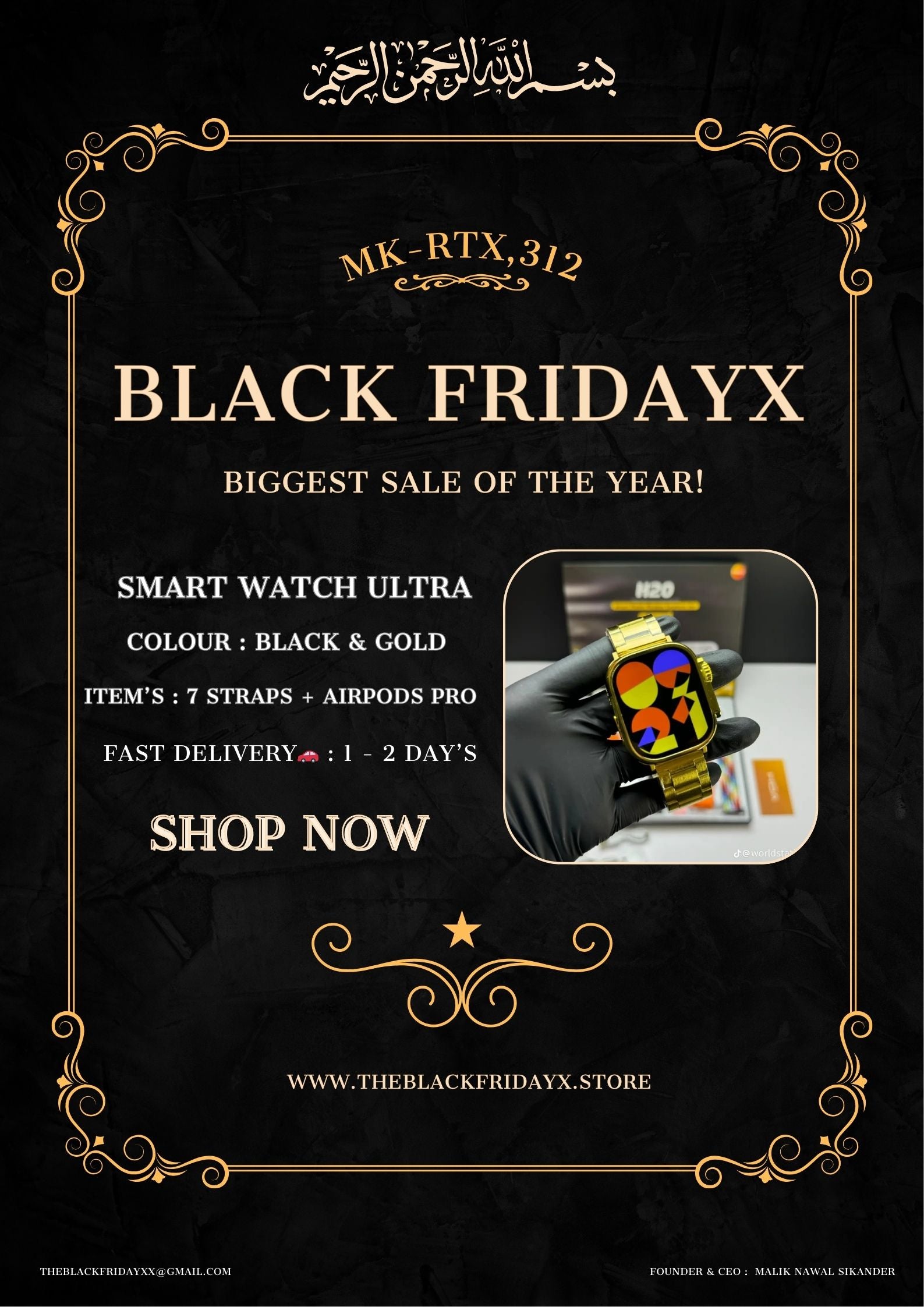 H 20 ULTRA GOLD SMART WATCH+AIRPODS